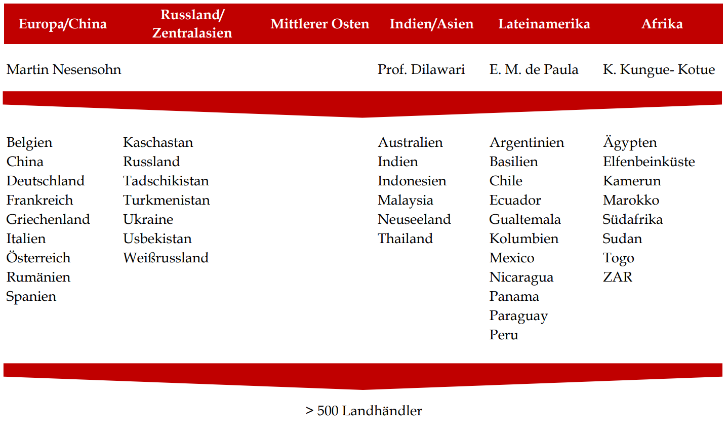 Durch dieses Regional Management werden die autorisierten Vertriebspartner sowie eigene Vertriebsniederlassungen in zahlreichen Ländern betreut.